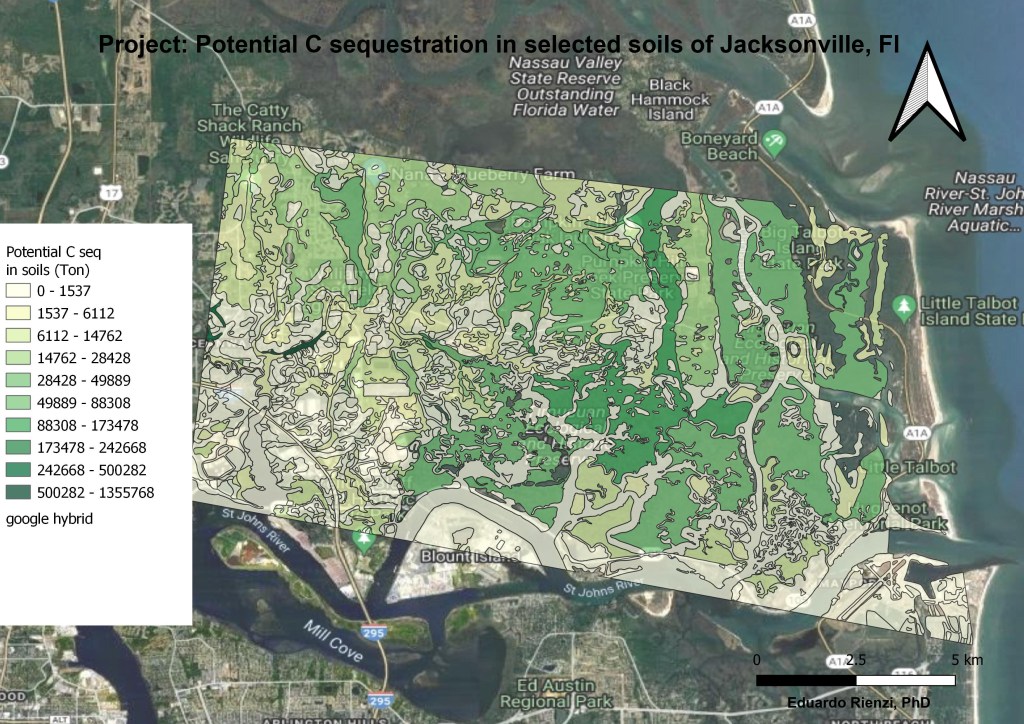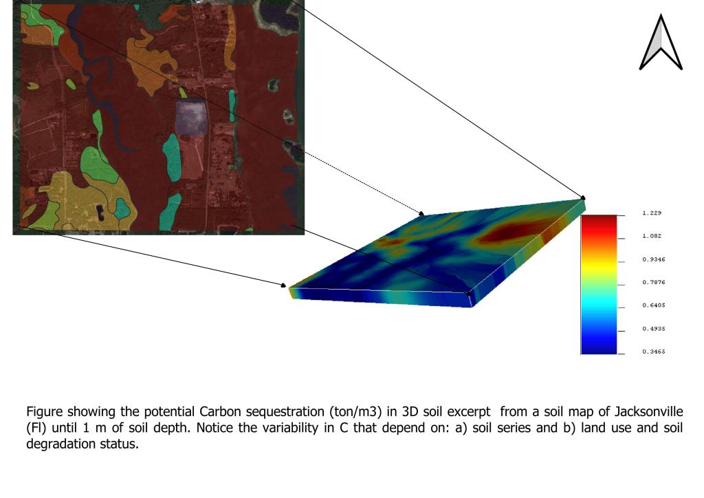Technology: Based on previous soil map in the selected region of Jacksonville, Fl. The analysis involved horizon evaluation in 3D for each soil series found in the selected area. Data were processed with R and Python, using semivariograms and 3D Kriging