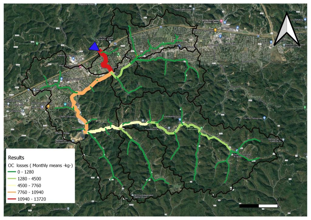 The region corresponds to West Virginia, with a forest-dominated landscape. It is a fact that inside of a watershed, all of the resources are interconnected for water; the river is showing the system stability and its response through the years. The objective was to evaluate the C fate in a stable ecosystem as a baseline to compare with other watersheds more disturbed in the region. In addition, could be used to evaluate the mass balance for C sequestration.
